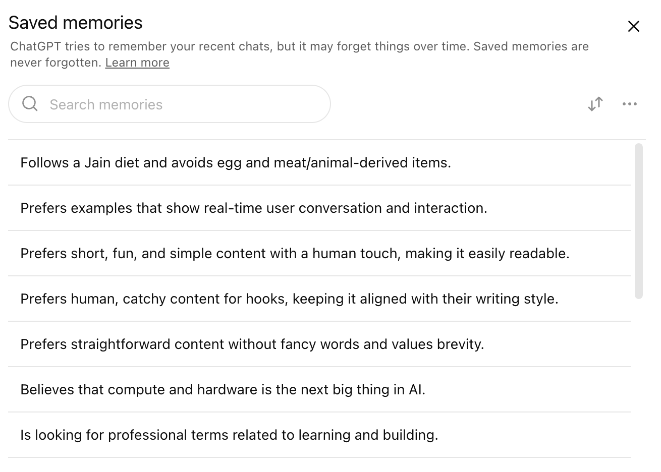 This is important for me since I travel a lot. When I ask for itinerary planning or food recommendations, the LLM should know my preferences.