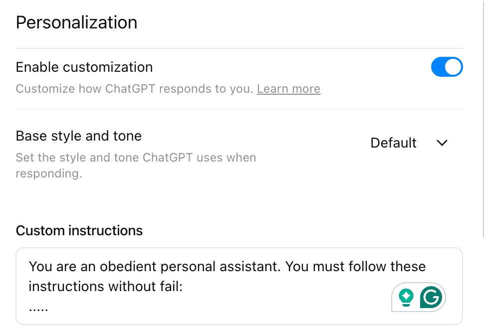 Let me get this straight. Personalization matters when you interact with LLMs. Generic answers feel robotic and distant, which is exactly why Custom Instructions are essential when using ChatGPT. This helps you adjust the tone to get more refined responses instead of generic ones.